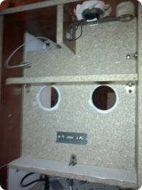 техотсек-это все то что осталось после внутренних стенок. Там стоит блок питания для куллеров, автомат на4 ампера, и разобранный вентилятор вентс на 100 кубов с димером, все провода разумеется проведены там.