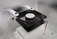 На обдув два 120мм кулера Zalman. Подвешены на цепях, крепятся на крючках, по мере роста поднимаются на следующий уровень